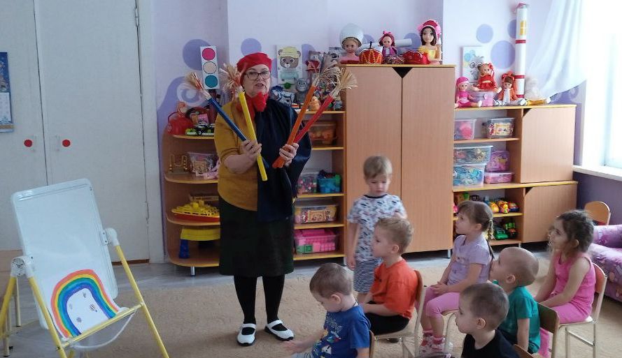 Ребята заглянули в мастерскую творца, увидели, как на белом листе рождается яркая радуга , и сами попробовали смешивать цвета – оказалось, из синего и жёлтого получается… зелёный! И это так же волшебно, как настоящее колдовство!