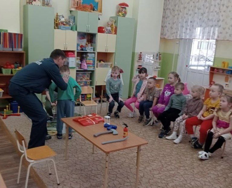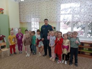 Иван Викторович работает в Министерстве по чрезвычайным ситуациям (МЧС). Он рассказал детям о своей важной и отважной профессии. Ребята узнали, что спасатель — это человек, который спешит на помощь в любую минуту: тушит пожары, оказывает первую помощь пострадавшим, работает на месте дорожных аварий и во многих других сложных ситуациях.