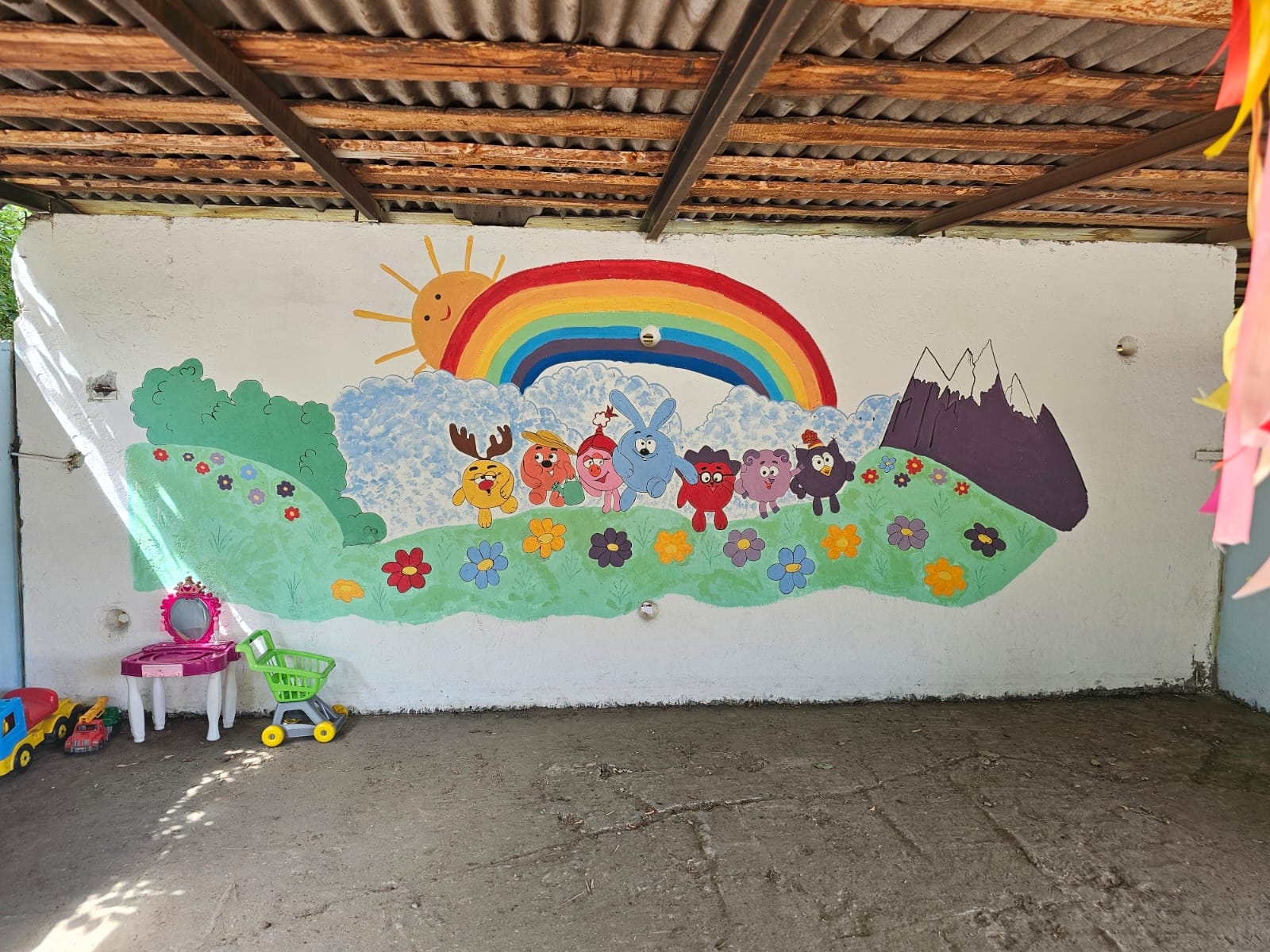 – 14 прогулочных участков для детей. Для защиты детей от солнца и осадков на территории каждой прогулочной площадки установлены теневые навесы.  Прогулочные площадки оборудованы малыми игровыми формами в соответствии с возрастом.
