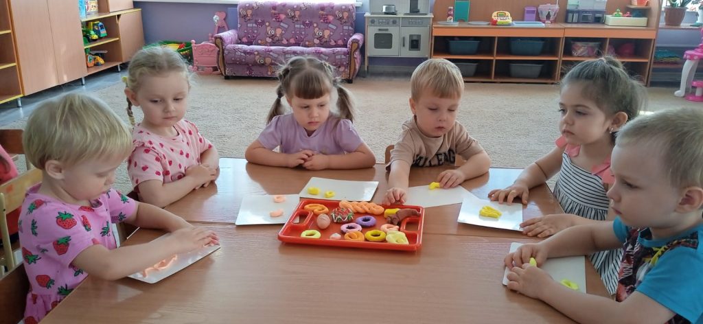 На занятиях ребята рисовали золотые колоски, лепили крендельки и баранки для игры в магазин.