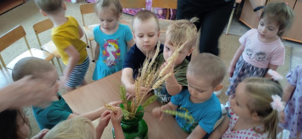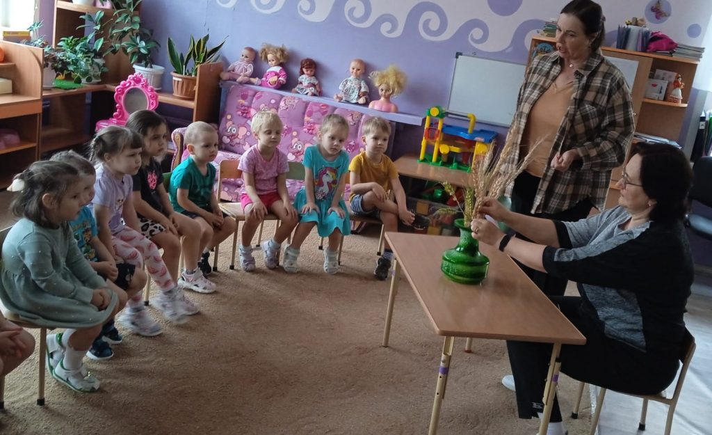 Читали сказки, стихи и загадки о хлебе, и даже рассматривали настоящие колоски пшеницы с алтайских полей.