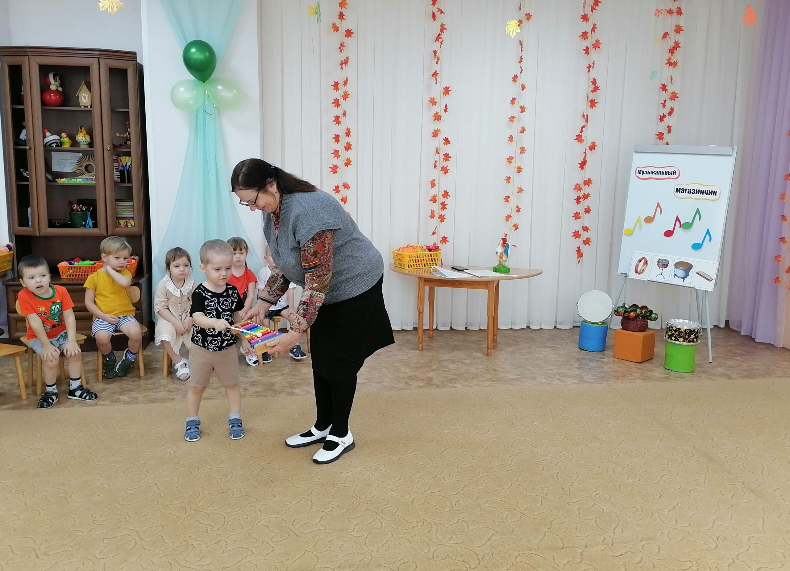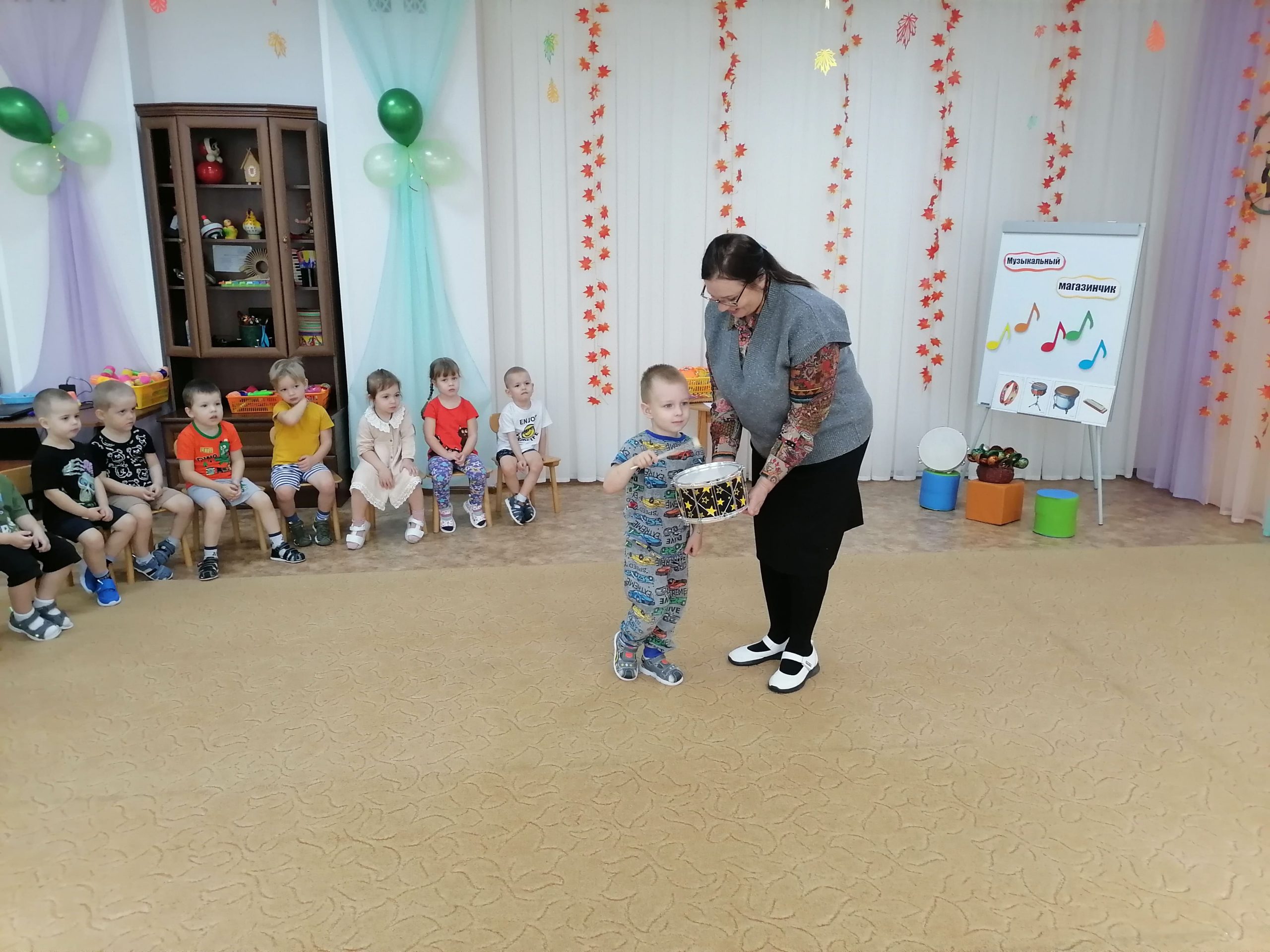 А вот малыши побывали в «Музыкальном Магазинчике, где познакомились с разными музыкальными инструментами и выполнили гимнастику под любимые песни Шаинского.