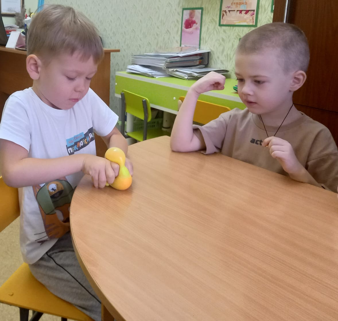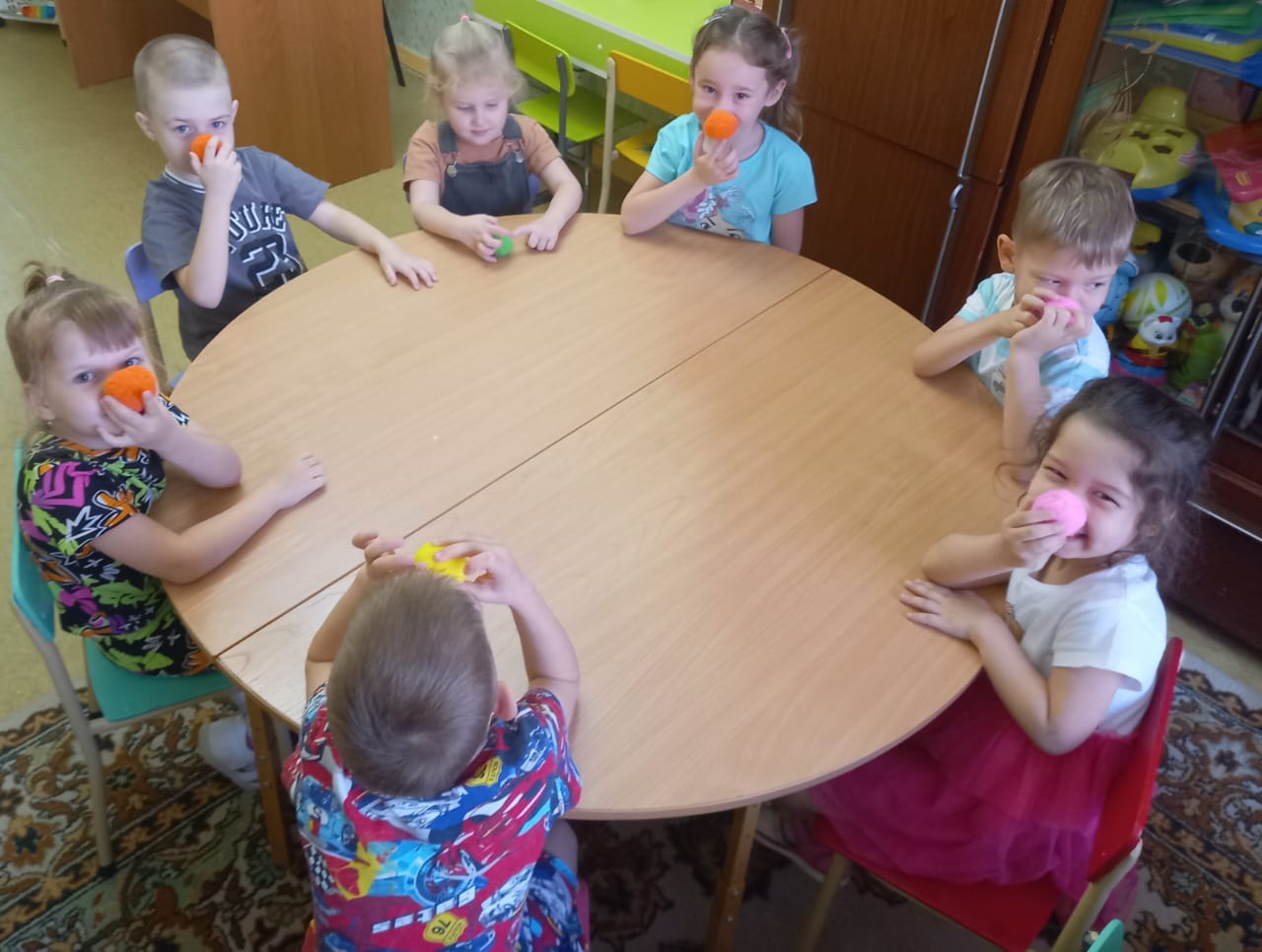 Большое внимание на занятиях уделяется развитию мелкой моторики: весёлые пальчиковые игры, игры с использованием мячей Су-Джок, корректурные пробы (раскрашивание с заданием).