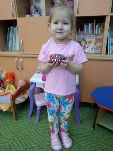 А ребята из средней группы №4 пришли в музей с подарком – шкатулкой. Дошколятам из 4 группы было очень любопытно заглянуть в каждую шкатулку. В одной из них дети обнаружили «пиратские монеты», чему были очень удивлены. Особенно было интересно ребятам, что же можно хранить в шкатулке размером со спичечный коробок. А больше всего им запомнилась деревянная шкатулка с росписью Кремля. Это подарок выпускников.