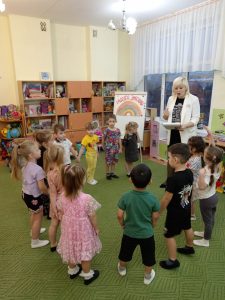 А чтобы ребятам было все понятно и интересно, Ирина Сергеевна предложила им отправиться в путешествие по «Радуге эмоций». Дошколята узнали очень много интересного. Какие бывают эмоции, как они проявляются и как ими можно управлять. Например «гнев» можно прятать в подушку, в шарик или в комочек смятой бумаги и даже в специальную кружку гнева.