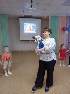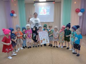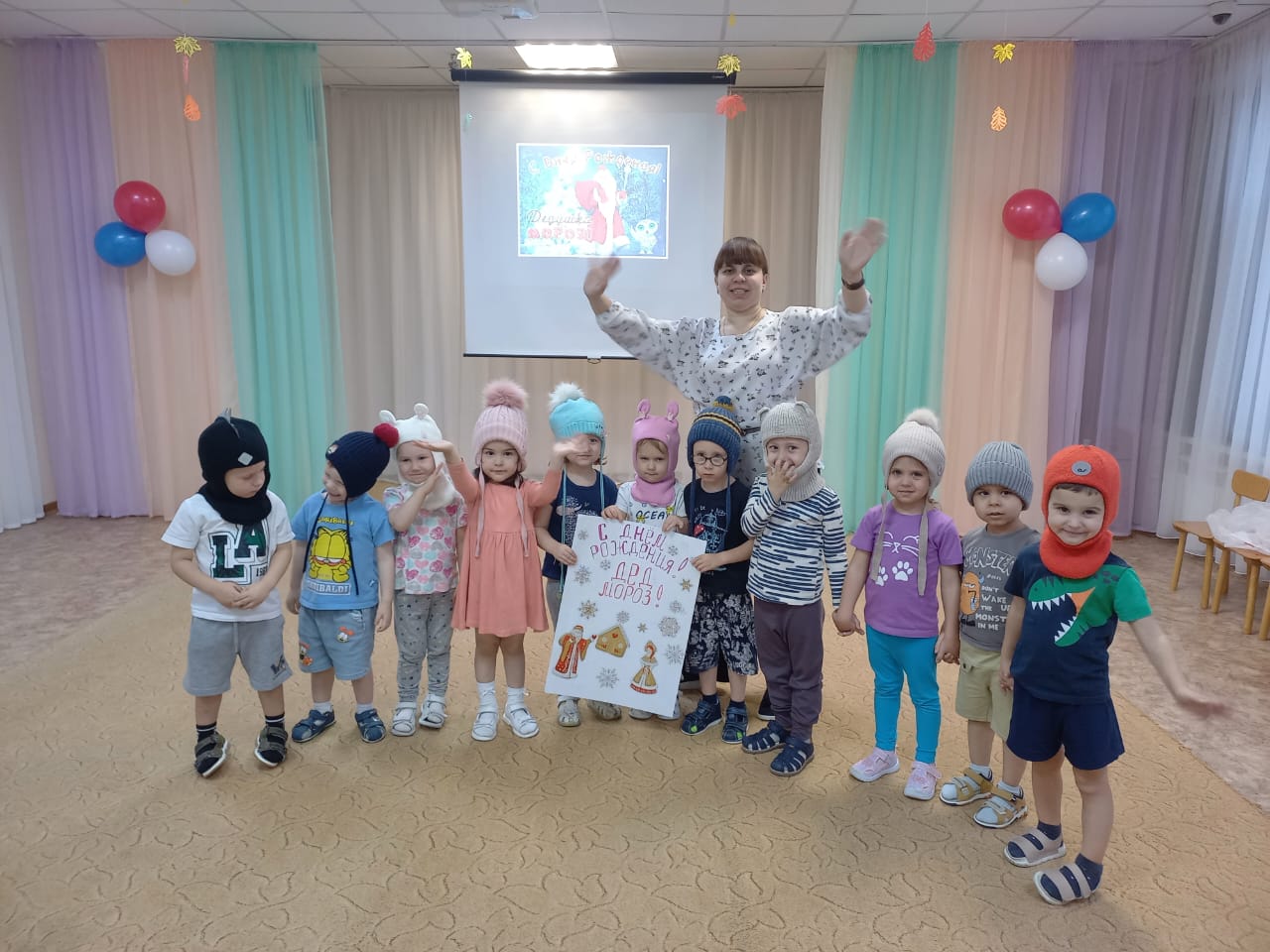 Ребята младших групп №12 и 3 поспешили его поздравить. Спели «Каравай», сделали поздравительную открытку и поиграли в любимые зимние игры.