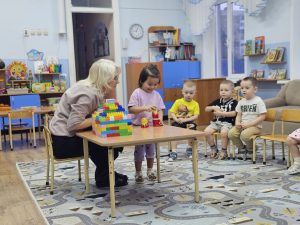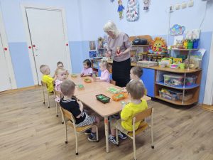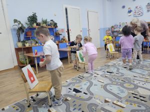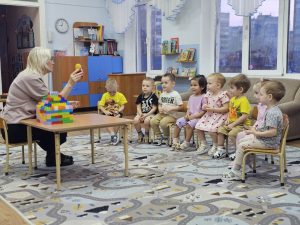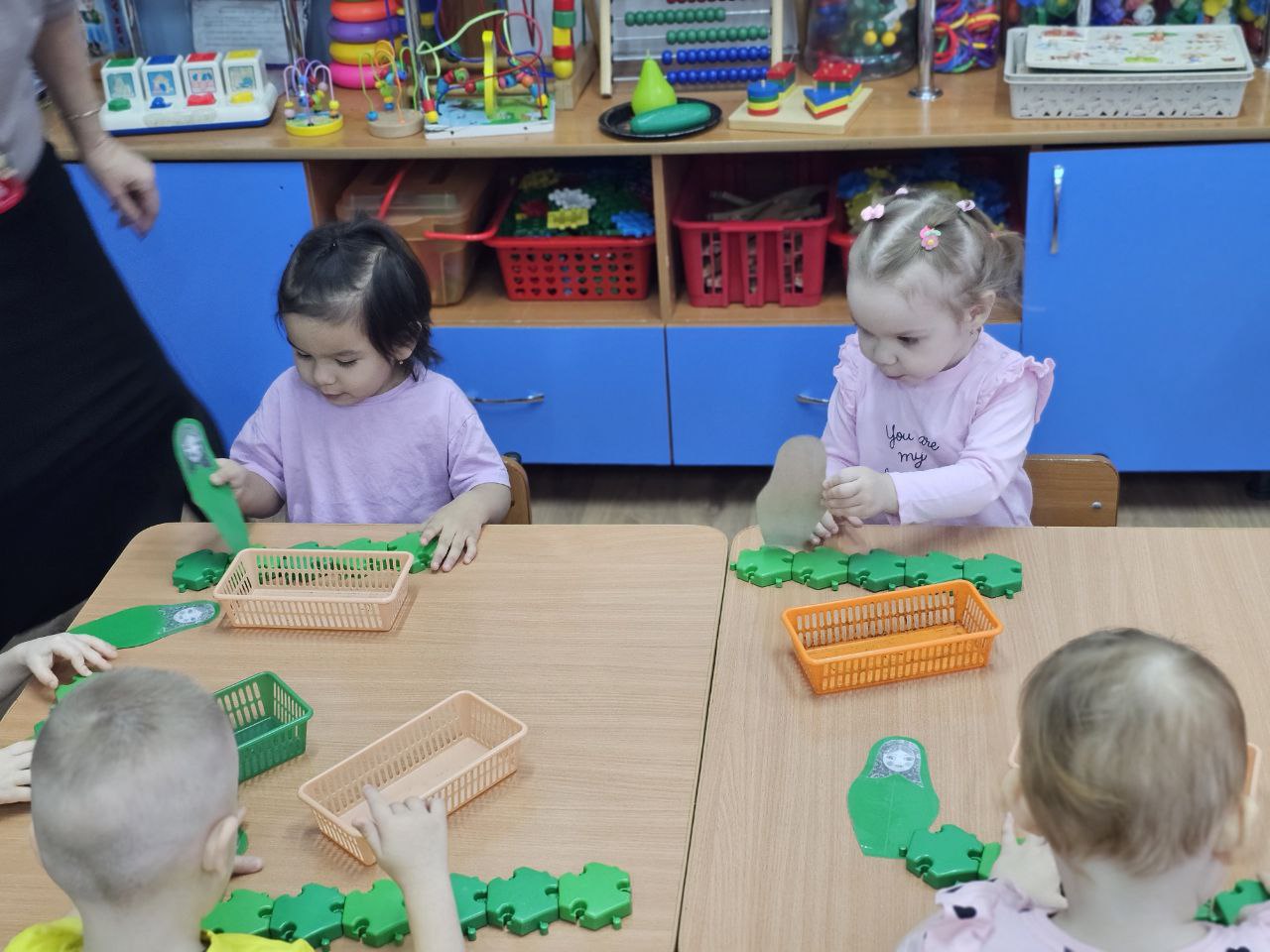 Это было не просто весело! В игровой форме дети прекрасно продемонстрировали свои знания (цвета, размеры) и речевую активность — рассказывали, помогали, комментировали!