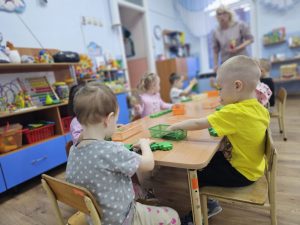 Спасали: когда пошёл «дождик», каждый малыш быстро нашёл для своей матрёшки домик нужного цвета.