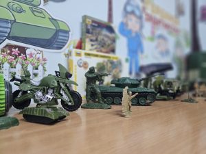 В преддверии 23 февраля в наших группах открылись необычные выставки. Чего тут только нет! И танки разных эпох, и самолеты, и крошечные фигурки солдатиков в идеальном строю. Знаете, что самое ценное? Многие экспонаты пришли к нам из семейных архивов. Это те самые солдатики, которыми играли еще папы, а иногда и дедушки! ♂️ Ребята с горящими глазами рассказывают: