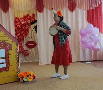 Каждый персонаж сказки выполнял определенное действие. Родители подошли к спектаклю очень ответственно. Огромное удивление детей вызвали герои, которые играли на металлофоне , на ложках, а также танцевали , показывали упражнения с лентами и прыгали на скакалке.