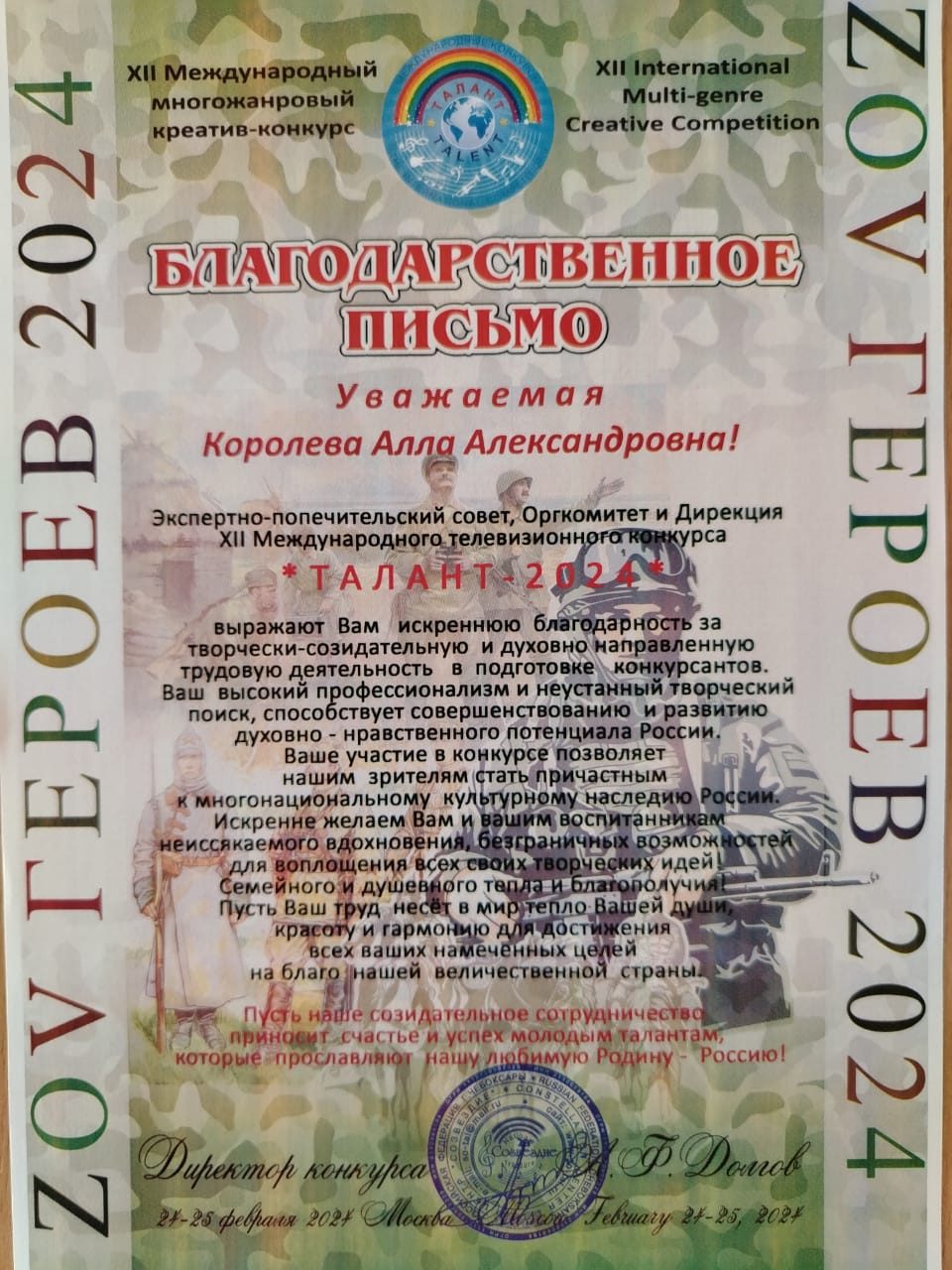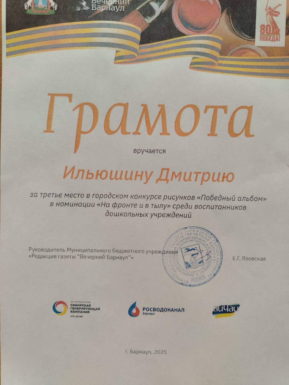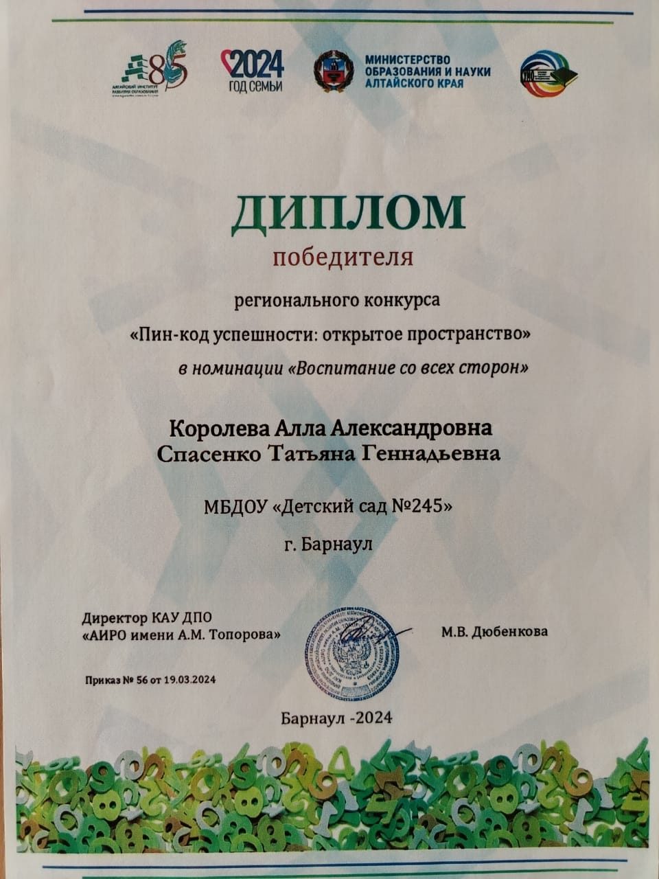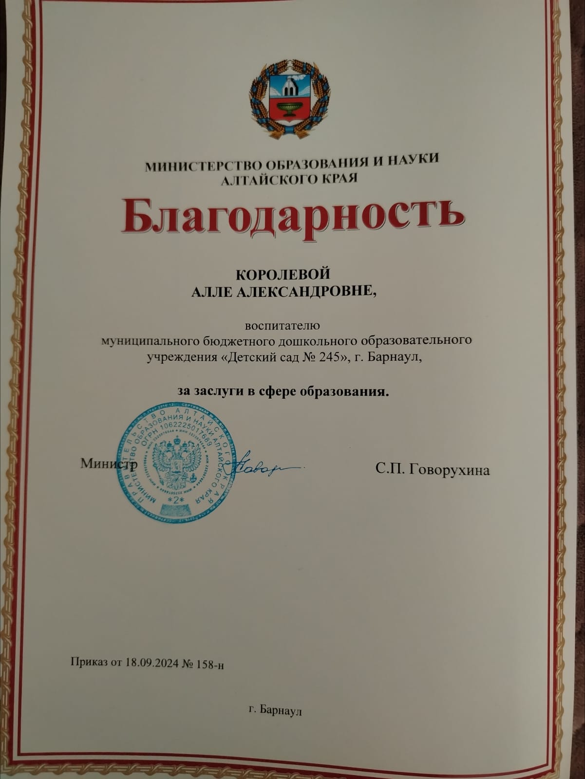 Благодарность Министерства образования и науки Алтайского края (приказ №158-н от 18.09.2024)