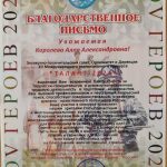 Благодарственное письмо администрации Индустриального р-на города Барнаула (постановление №1072 14.09.2020)