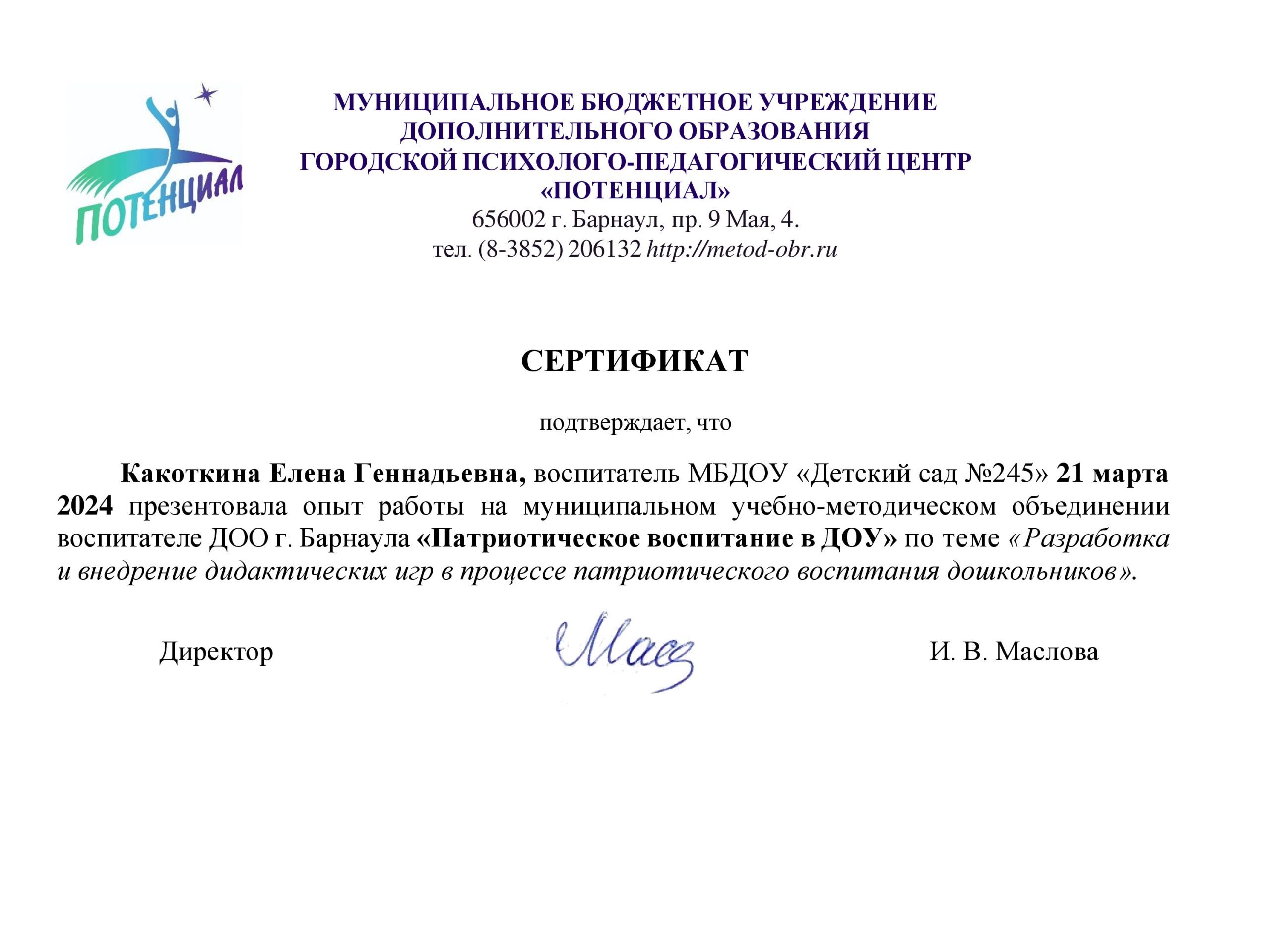 Какоткина Елена Геннадьевна